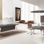 The sculptural contrast of weights and volumes fully identifies the spirit of the Vigo collection. Ideal for small and large corporate offices or home office.